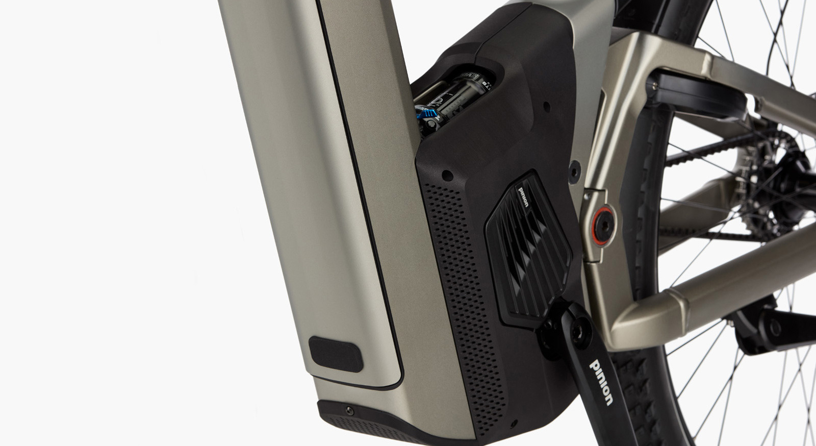 Het Pinion E-Drive System verenigt een krachtige elektrische motor, een beproefde aandrijftechnologie en een elektrische schakeling in een perfect op elkaar afgestemd pakket. De voordelen: weinig onderhoud, geen noemenswaardige slijtage en efficiënte schakelprestaties. Voor een optimale gewichtsverdeling zit de unit van motor en aandrijving goed beschermd direct boven de trapas. Het achterwiel blijft zonder cassette en schakelmechanisme licht en stabiel, de vering kan vrijer bewegen. Voor de fietsbeleving betekent dit: soepelheid, comfort en een maximale tractie ook bij hoge snelheden.