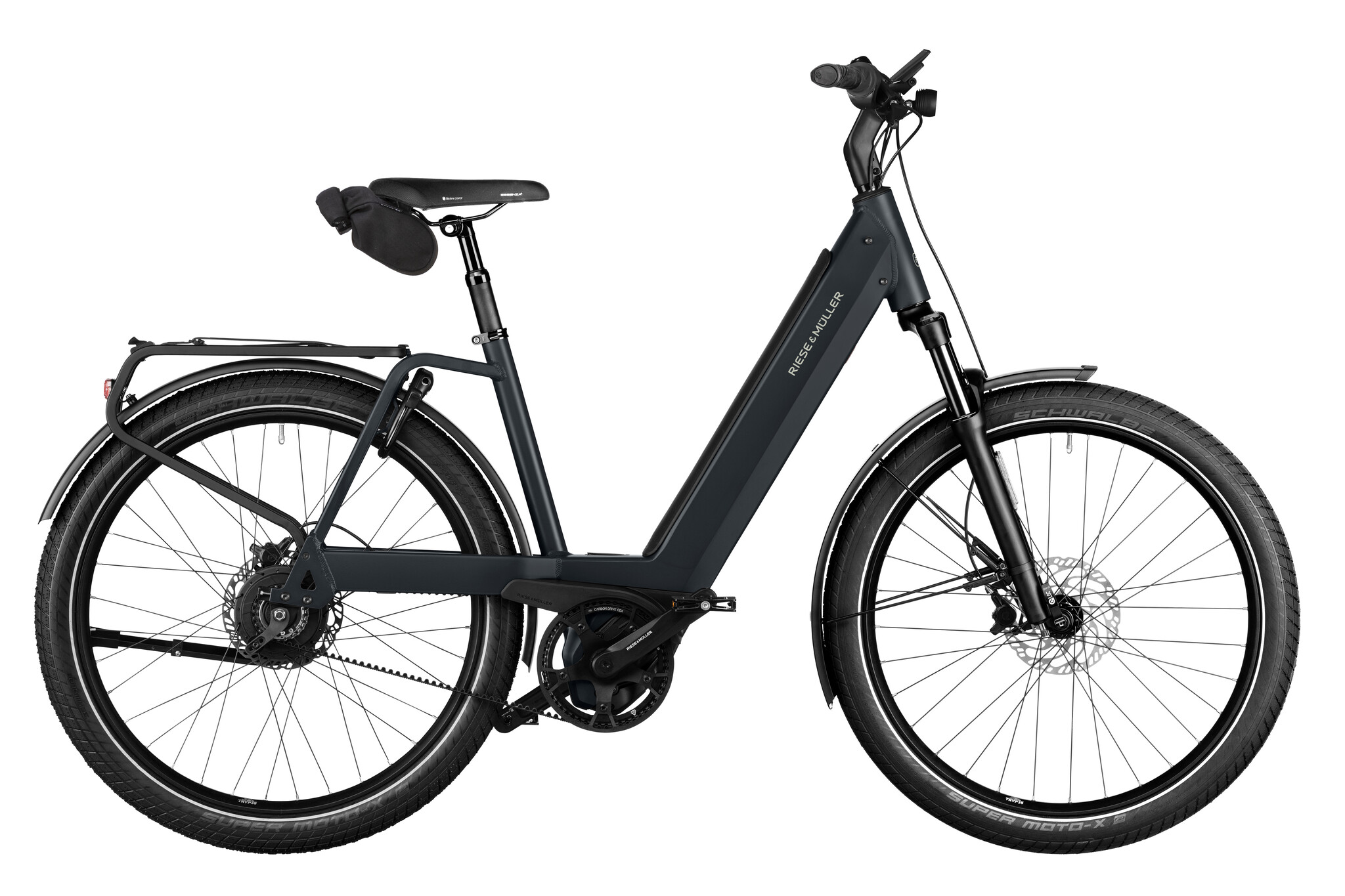 Dankzij de standaard bagagedrager met MIK-systeem is uw bike perfect uitgerust voor de meest uiteenlopende transportdoeleinden. U kunt snel een eenvoudig tussen uw accessoires wisselen – of het nu een tas is voor het werk, een mand voor een picknick-uitstapje of twee grotere fietstassen voor de wekelijkse boodschappen (max. 20 kg). Aanvullende bagage vervoert u met de in het frame geïntegreerde voordrager (met of zonder tas) eveneens veilig naar de eindbestemming. En als u vaak buiten de gebaande paden fietst, kiest u voor de Offroad kit met all-terrain-banden.